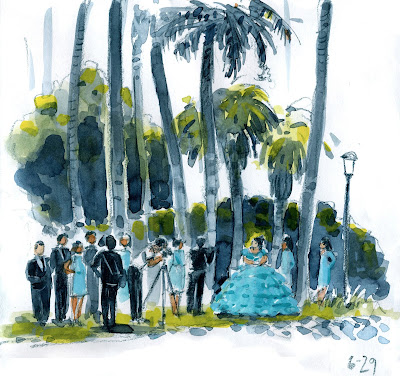 Some very quick sketches made at the newly reopened Echo Park-- people out enjoying summer. These were made on several days with record heat. Too much for some to just look at that beautiful water, they just had to wade in!
